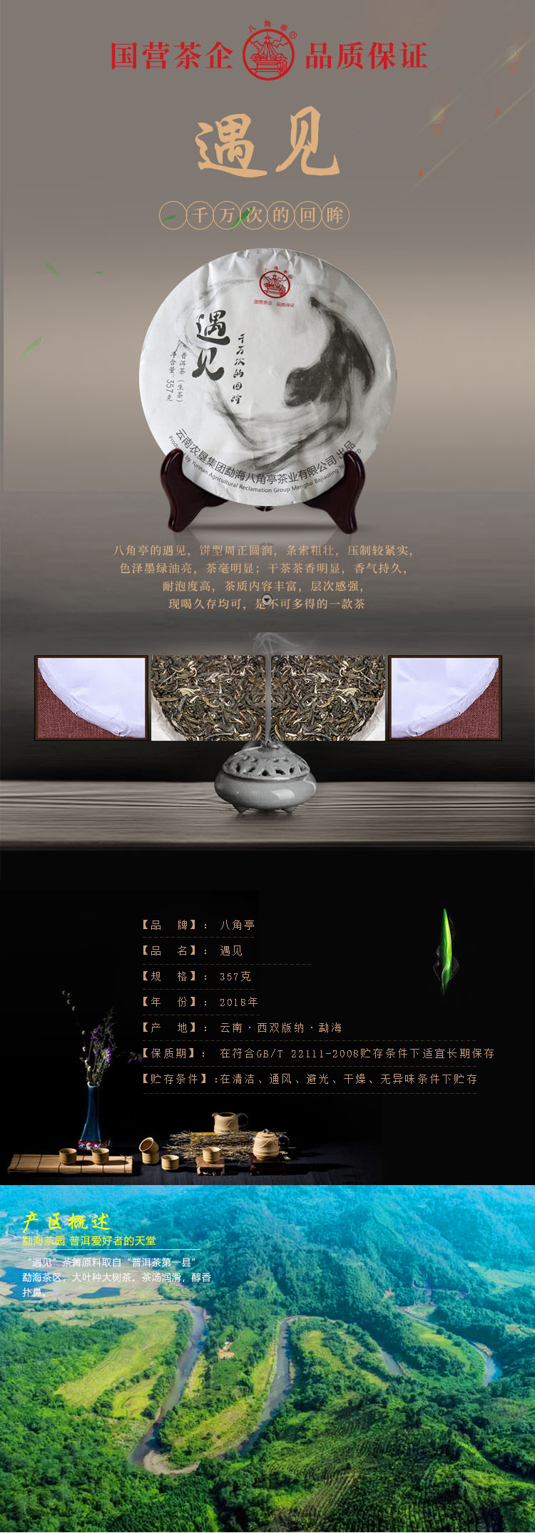 云墾茶業(yè)集團(tuán)下屬茶葉生產(chǎn)企業(yè)——云南農(nóng)墾集團(tuán)勐海八角亭茶業(yè)有限公司原名黎明茶廠,是我國(guó)歷史最為悠久的茶企之一,曾位列“中國(guó)普洱茶十大知名品牌”“十大最受歡迎茶葉品牌”、“中國(guó)普洱茶十大暢銷品牌”中,成為今天市場(chǎng)上最有影響力的品牌之一。公司產(chǎn)品獲得“綠色食品”、ISO9001、 HACCP和云茶品牌(YC)4項(xiàng)認(rèn)證,連續(xù)獲得“云南名牌農(nóng)產(chǎn)品”“云南名牌產(chǎn)品”“云南省著名商標(biāo)”等品牌榮譽(yù),公司生產(chǎn)的多款普洱茶在歷次專業(yè)評(píng)比中多次獲得特等金獎(jiǎng)和金獎(jiǎng)。在2018第五屆中國(guó)企業(yè)五星品牌論壇上,云南農(nóng)墾集團(tuán)勐海八角亭茶業(yè)有限公司上榜中國(guó)普洱茶行業(yè)影響力品牌——“金芽獎(jiǎng)”,公司負(fù)責(zé)人陳勝軍先生獲“陸羽獎(jiǎng)”,被授予2017“國(guó)際十大杰出茶人”榮譽(yù)稱號(hào)。