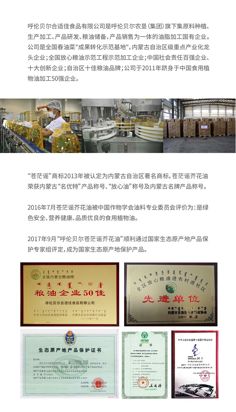 呼倫貝爾農墾出品蒼茫謠芥花油低芥酸菜籽油非轉基因1L*2禮盒